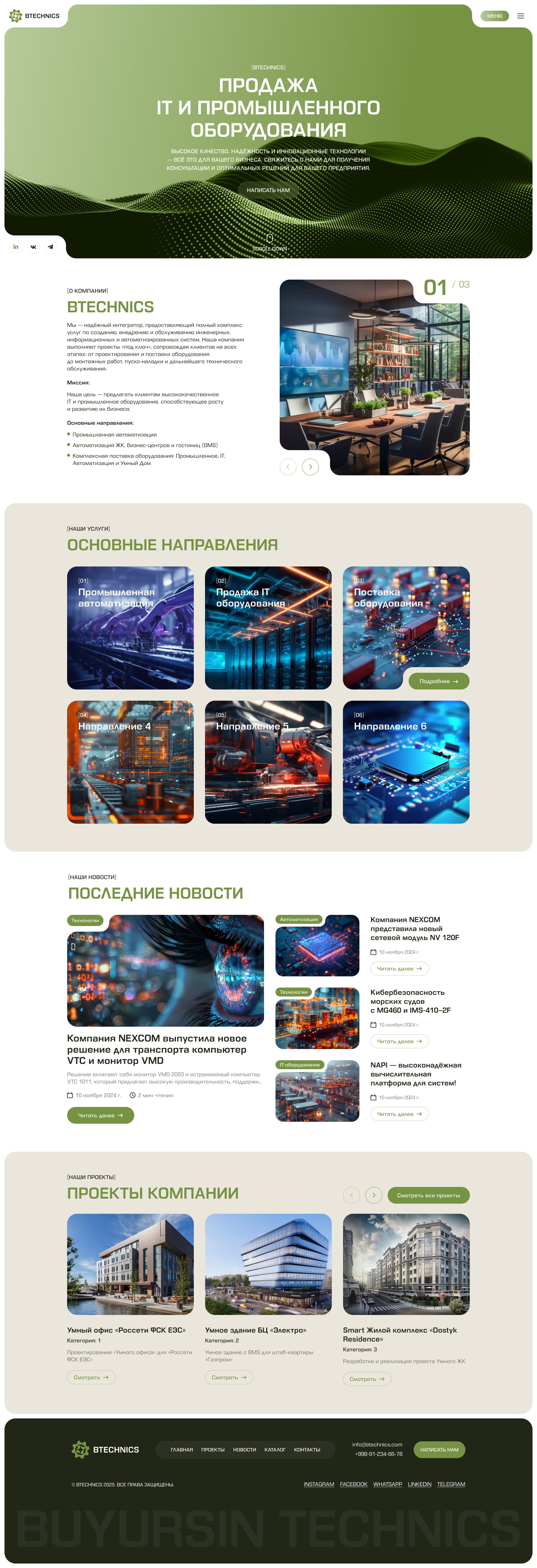 Buyursin Techhics — надёжный интегратор, предоставляющий полный комплекс услуг по созданию, внедрению и обслуживанию инженерных, информационных и автоматизированных систем. Компания выполняет проекты «под ключ», сопровождая клиентов на всех этапах: от проектирования и поставки оборудования до монтажных работ, пуско-наладки и дальнейшего технического обслуживания.